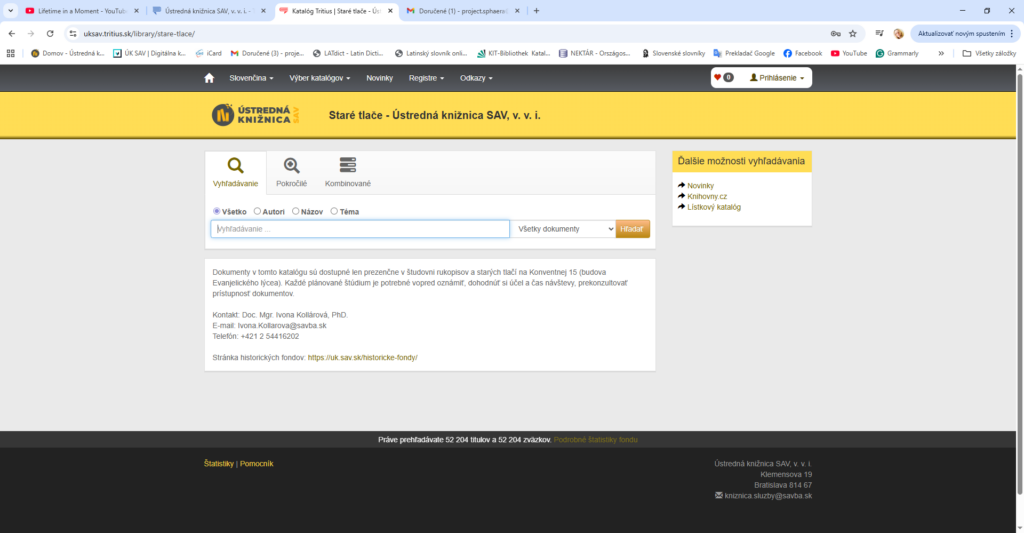 Pozor! V databáze je stále spracovaná len časť historických zbierok, ktoré sprístupňujeme. Ak dokument (historickú tlač alebo periodikum) v báze nenájdete, alebo pri akýchkoľvek iných problémoch a otázkach, kontaktujte naše pracovisko prostredníctvom vyššie uvedeného kontaktu.