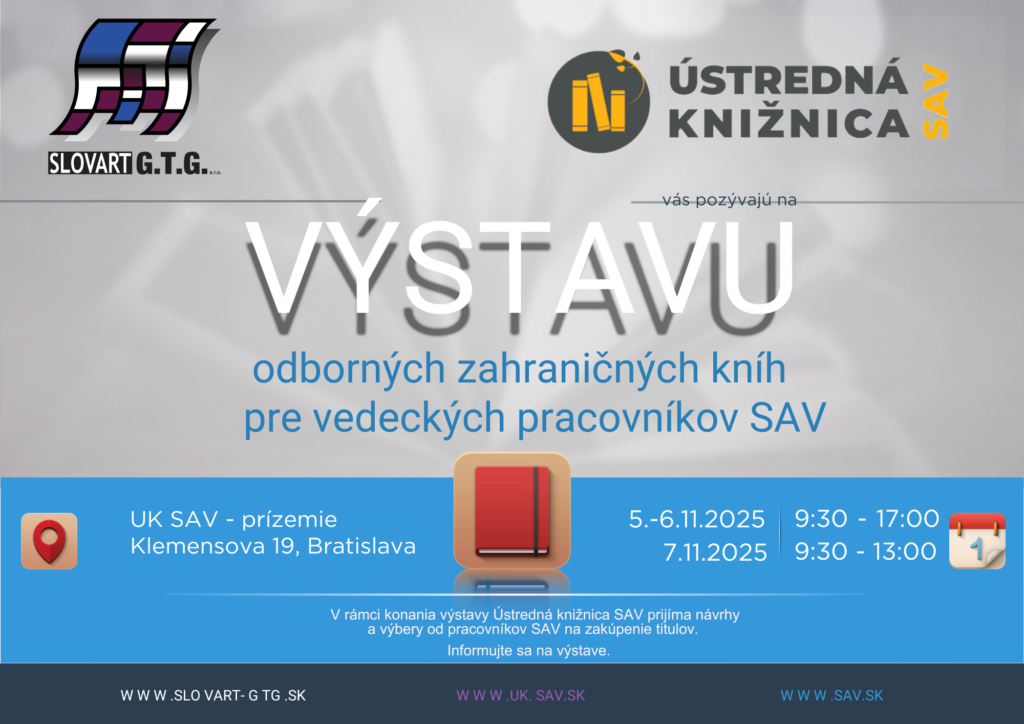 Výstava prebehne v priestoroch Ústrednej knižnice SAV –Klemensova 19 (prízemie).